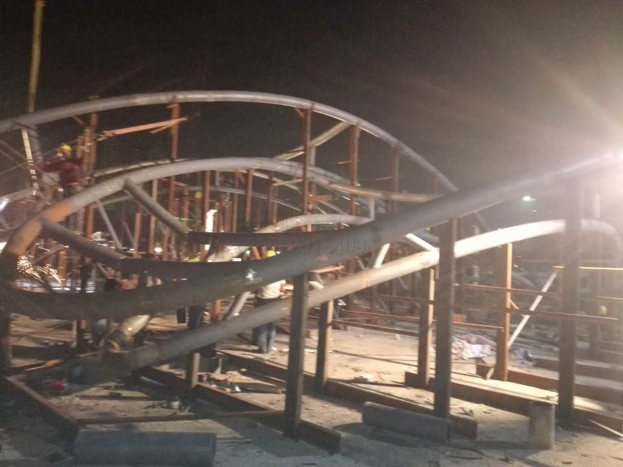 除了連夜趕工,為了能對現(xiàn)場鋼結(jié)構(gòu)成型施工過程中出現(xiàn)的問題進行及時處理,除了對口技術(shù)監(jiān)督員和業(yè)務(wù)員,燁興公司還特意安排了負(fù)責(zé)此次項目的設(shè)計師進行現(xiàn)場派駐,這是非常認(rèn)真負(fù)責(zé)的工作態(tài)度。我們十分理解業(yè)主方的急迫心理,其實我們自己都十分關(guān)注工程進度,因為工程完工得越快,我們的收益就越大。