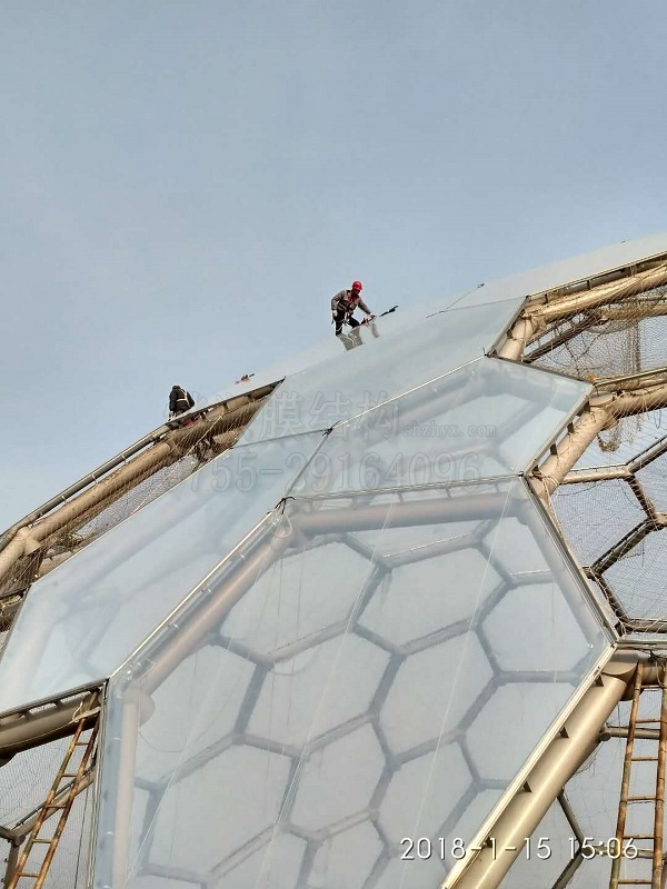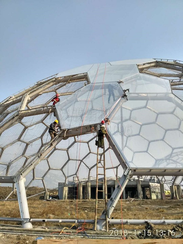 熱烈祝賀:燁興連云港薔薇湖ETFE膜結(jié)構(gòu)生態(tài)園項(xiàng)目開(kāi)始進(jìn)入正式大規(guī)模裝膜階段!